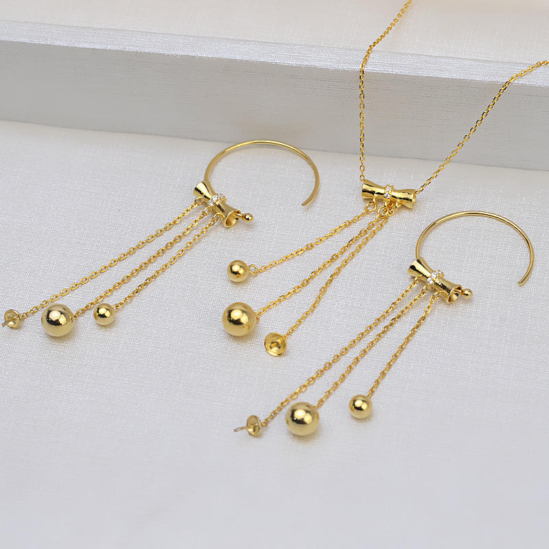 Juego de Pendientes Colgantes de Plata de Ley S925 Han, con 3 Cadenas, Gancho para Oreja, Collar con Colgante para Mujer, Accesorios de Joyería DIY, Bandeja para Perlas Vacías 1276