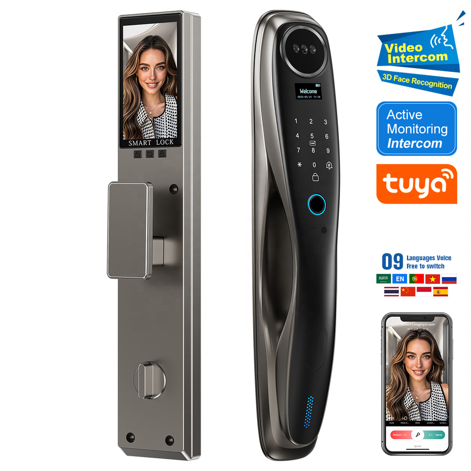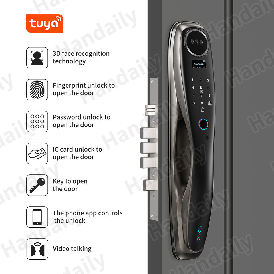 HanDaily Video Monitoreo Intercomunicador 3D Reconocimiento facial Tuya Smart Lock Contraseña Tarjeta Clave Desbloqueo Bloqueo digital Productos para el hogar inteligente