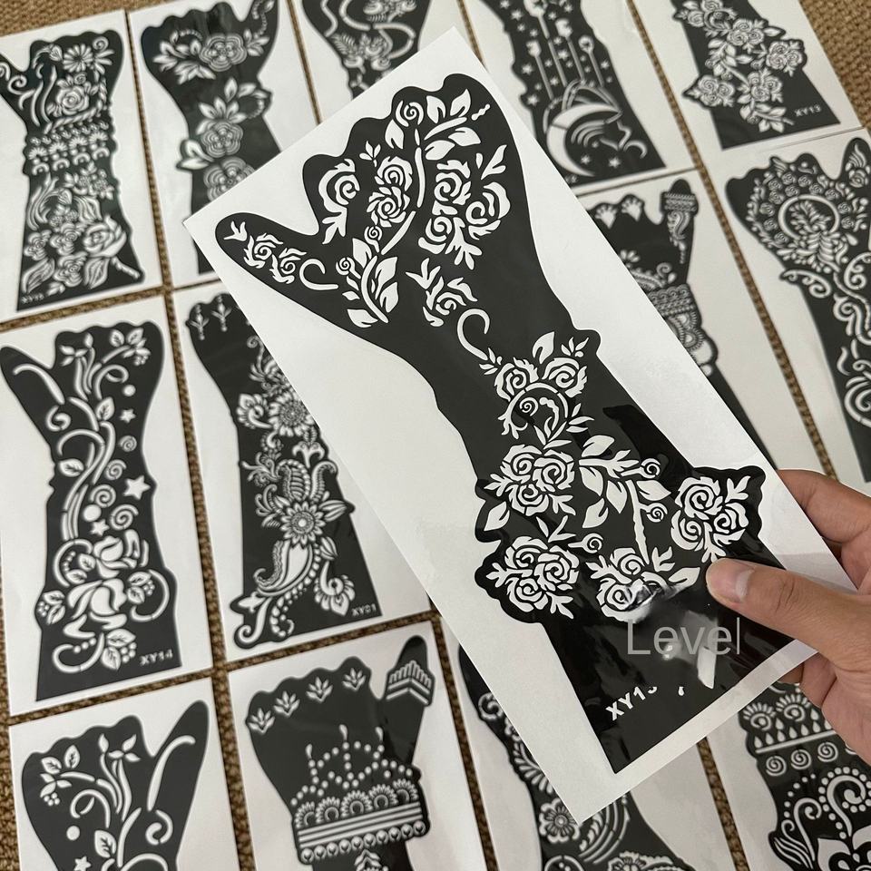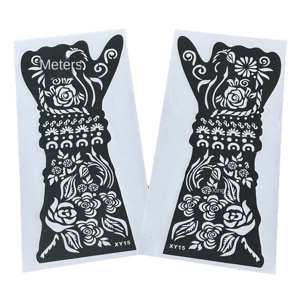 Pegatina de Tatuaje de Diseño Geométrico Personalizable Hana, Logotipo Personalizado, Plantilla Pintada a Mano para Halloween, Semipermanente, para Festivales de Música