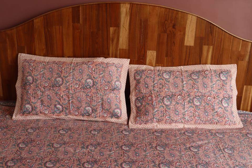 Juego de Sábanas con Estampado Artesanal, Ropa de Cama de Algodón Cambray, Colcha Hecha a Mano en India con Fundas de Almohada, Tamaño Queen y King