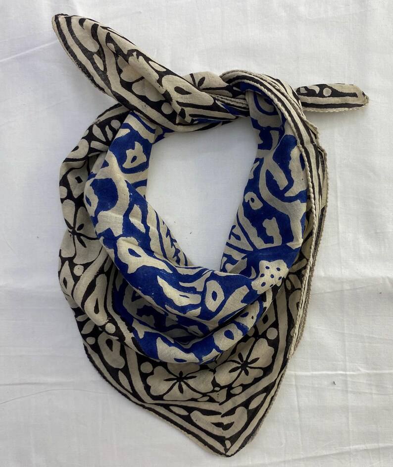 Pañuelo de Algodón Azul con Estampado a Mano, Diseño Bohemio de Paisley, Ecológico, para Envolver el Cabello, Regalo para Ella