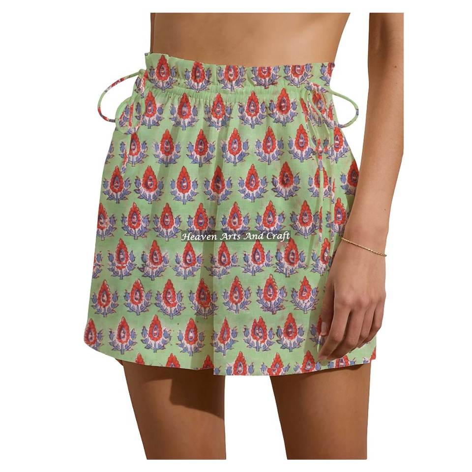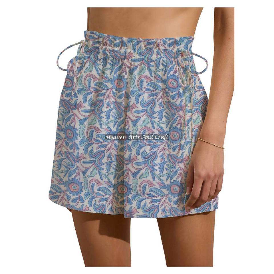 Nombre del producto:Pantalones Cortos de Fines de Semana Estampados a Mano en Bloque 100% Algodón
