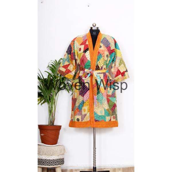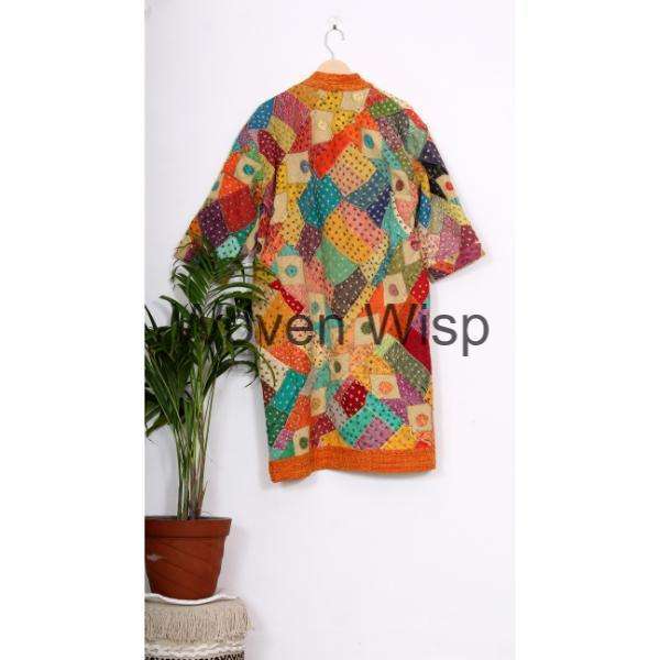 Chaqueta Kantha con estampado de bloques a mano, estilo Kimono japonés, ropa de playa Bohemia, bata de invierno con aire acondicionado