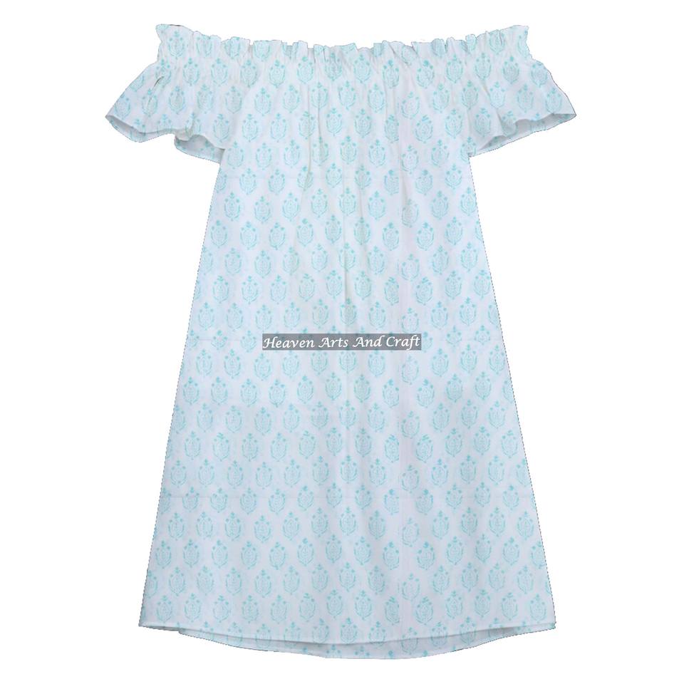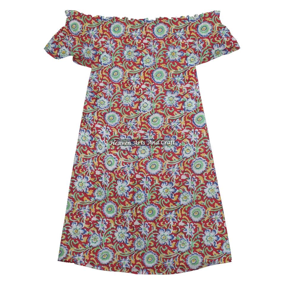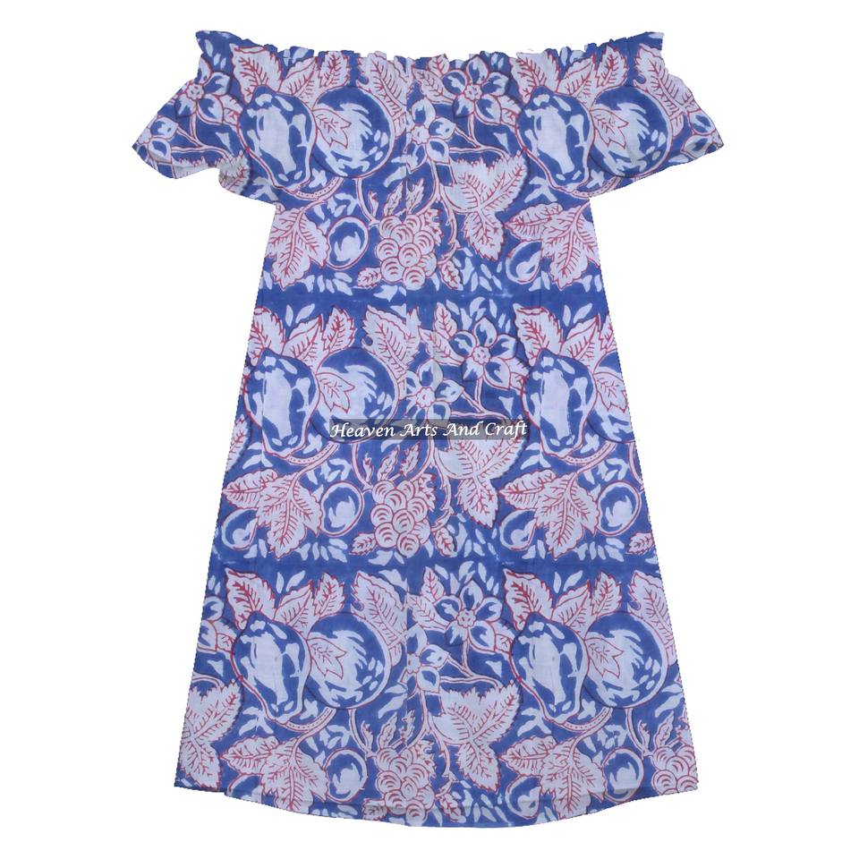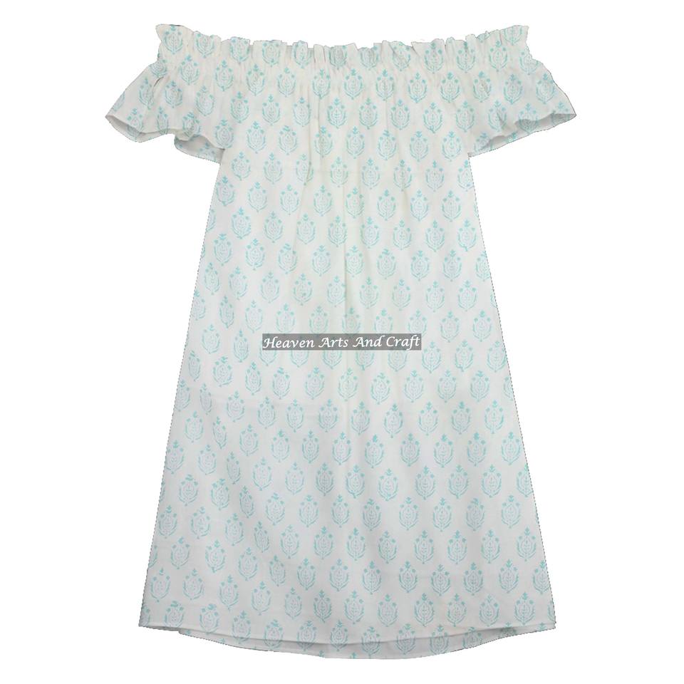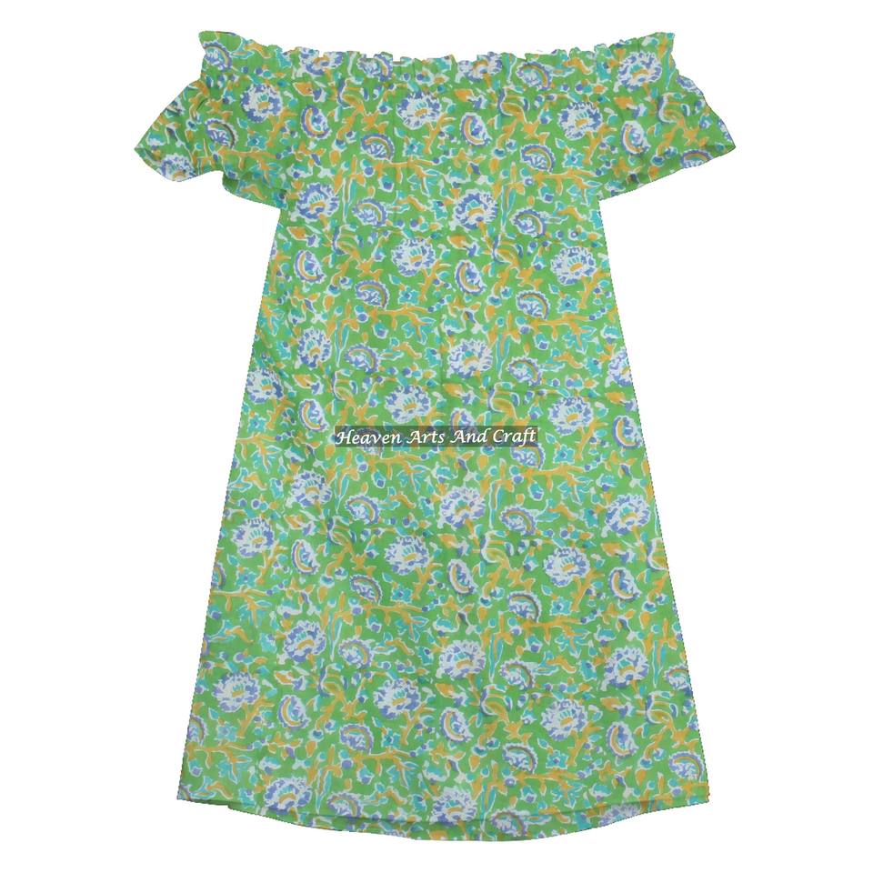 Nombre:Vestido con hombros descubiertos de tela estampada 100% algodón