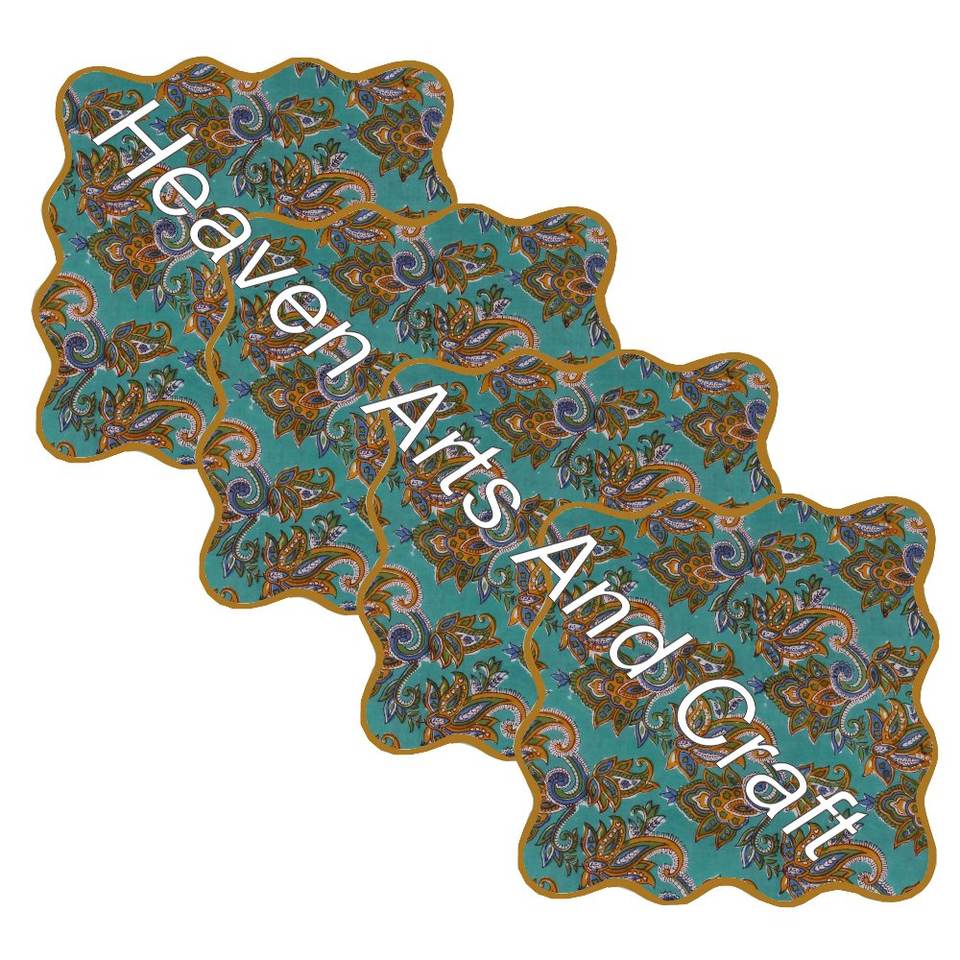 Servilletas con estampado de bloque de mano, mesa, vieiras