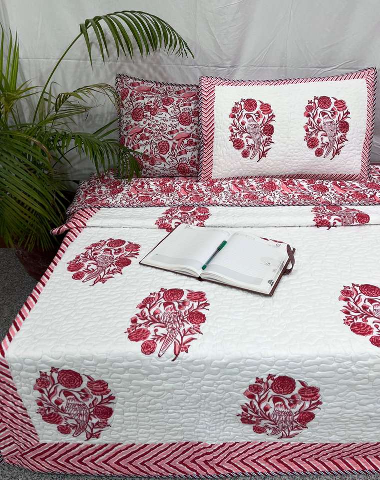 Edredón Floral ecológico de algodón 100% con estampado de bloque de mano con fundas de almohada, juego de edredón de algodón Jaipur artesanal