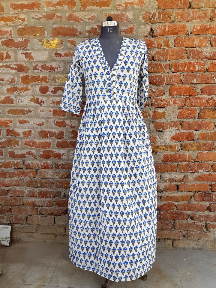 Bloque de mano impreso 100% algodón vestido indio Casual túnicas y vestido largo con decoración bordada"
