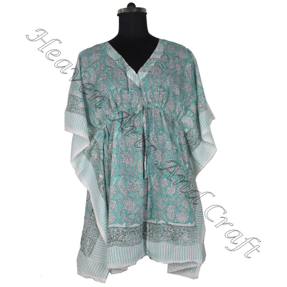 Caftán de algodón estampado a mano, caftán indio hecho a mano KFCS028 Abaya Kaftan Caftan árabe Jalabiya Dubai, estampado de bloque de mano a la moda