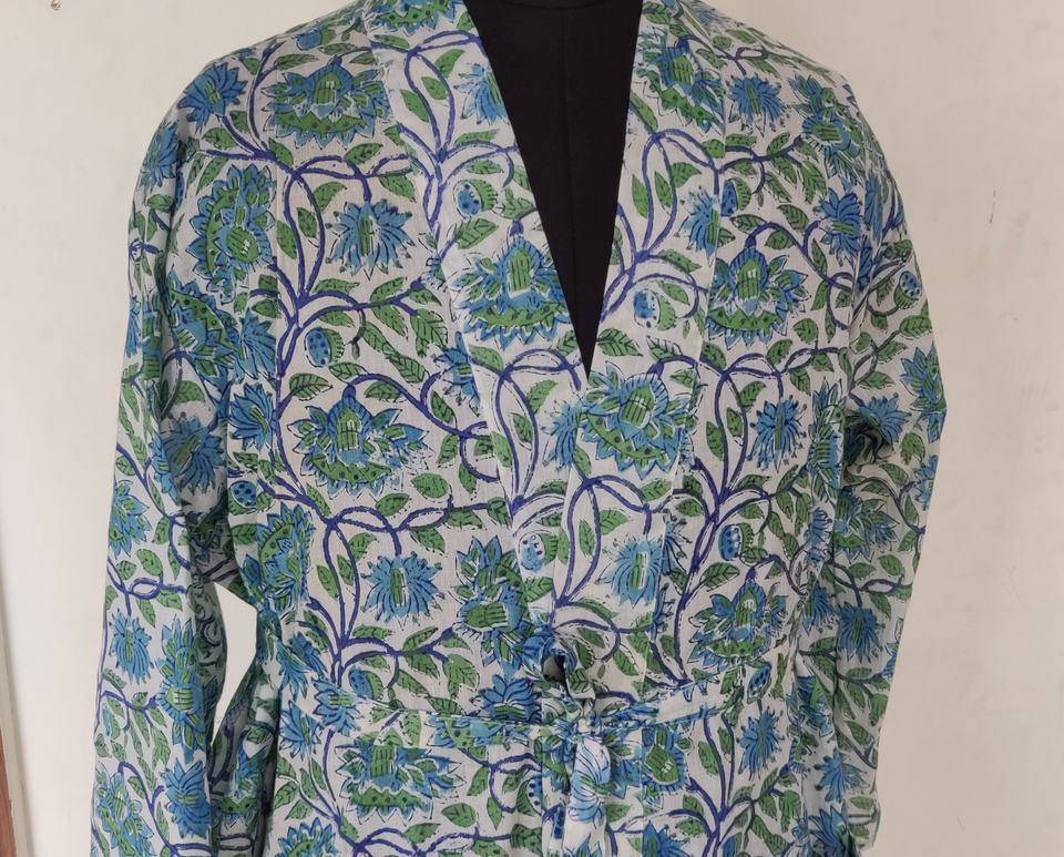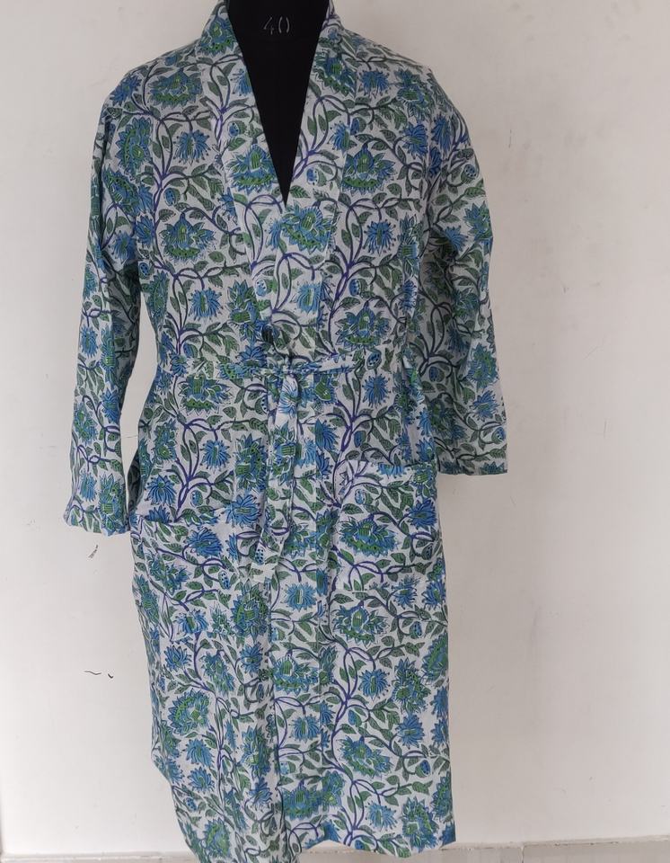 Kimono de algodón con estampado a mano para mujer, bata de baño de algodón puro, vestido de noche hecho a mano