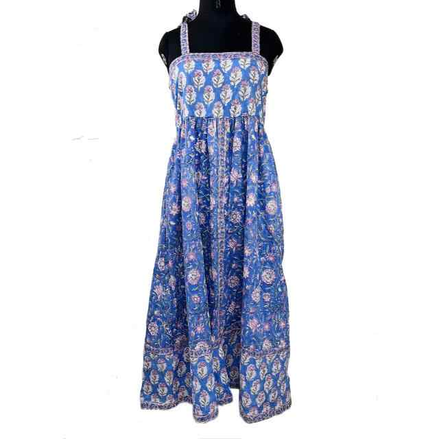 Vestido con estampado de bloques a mano, túnicas indias, vestido largo indio con estampado a mano, vestido de algodón indio, vestido sin mangas con correa ajustable