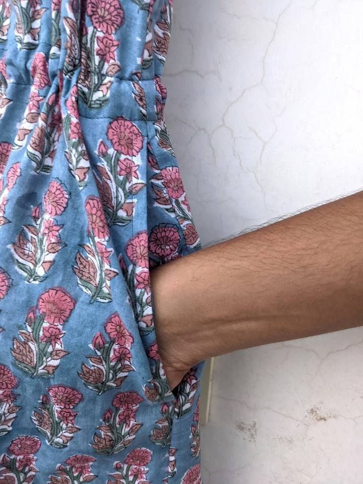 Vestido estampado bloque a mano Vestido corto Boho vestido de gasa de algodón indio