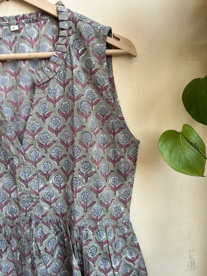 Vestido estampado de bloque de mano verano casual sin mangas Maxi indio estampado Floral ropa de verano mujeres vestido de verano de algodón sin mangas
