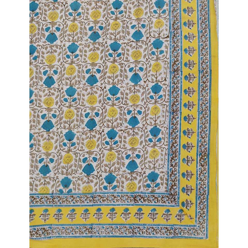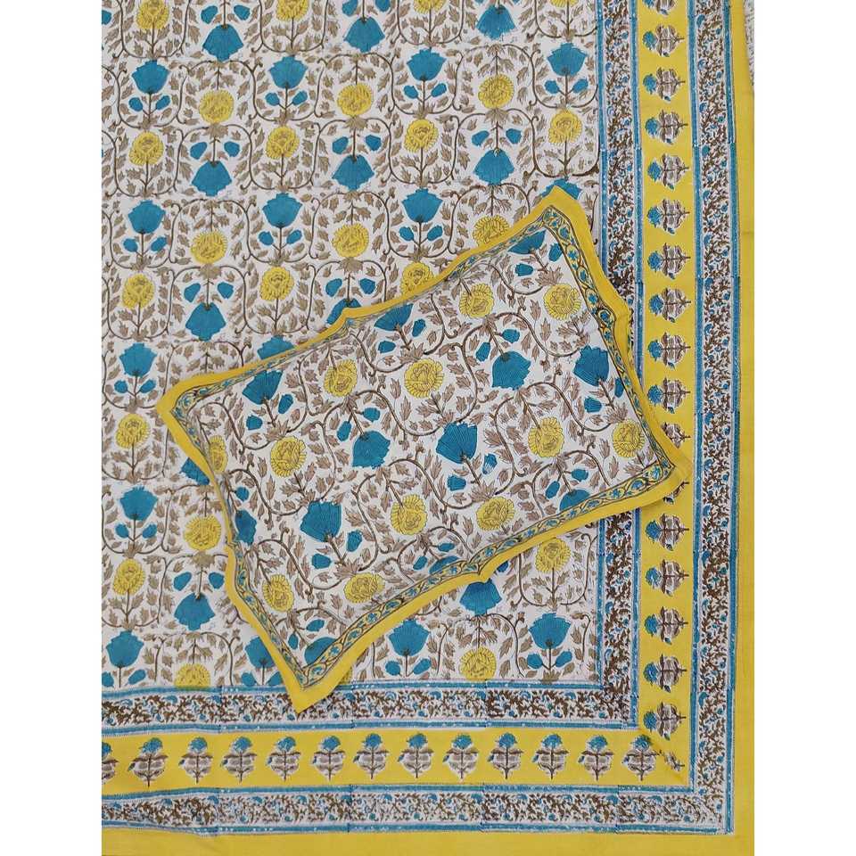 Juego de Edredón Floral Ecológico de 3 Piezas con Funda de Almohada y Sábana Doble King Size 100% Algodón Estampada a Mano para el Hogar