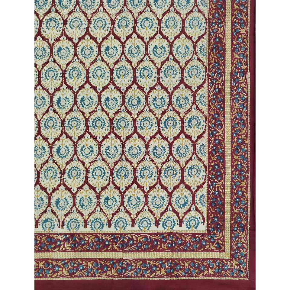 Juego de Edredón Floral Ecológico de 3 Piezas con Funda de Almohada y Sábana Doble King Size 100% Algodón Estampada a Mano para el Hogar
