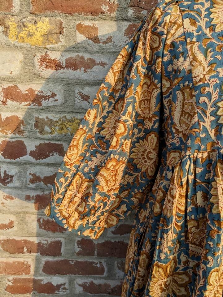 Vestido Maxi Estampado a Mano para Verano, Algodón Floral Hecho a Mano, Sostenible para Otoño