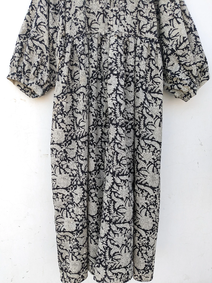 Vestido Maxi Estampado a Mano para Verano, Algodón Floral Hecho a Mano, Sostenible para Otoño