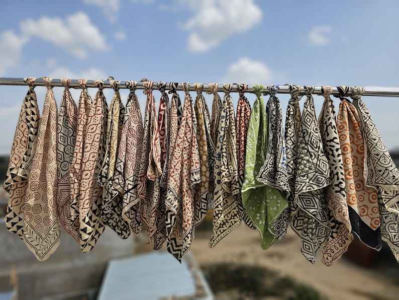 Nombre del Producto:Pañuelos de algodón coloridos, estampados a mano, para verano, unisex