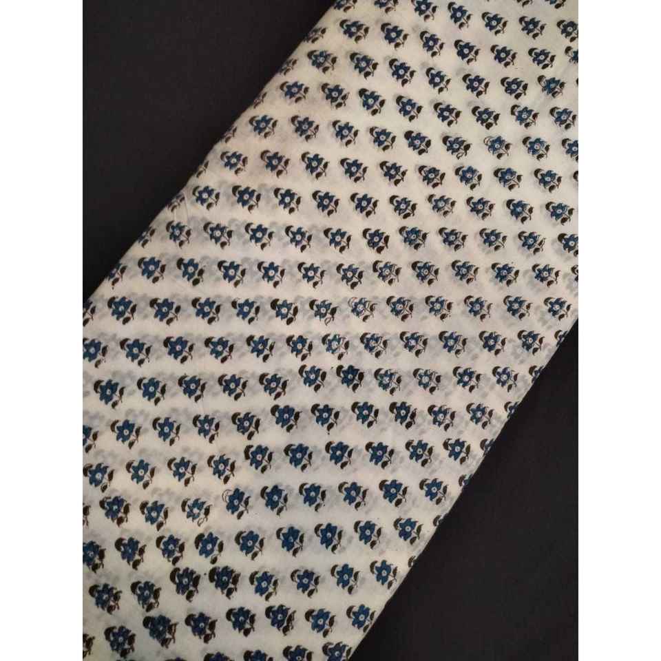 Tela puro con estampado de algodón peinado de bloques a mano con base blanca Diseño indio de estilo cruzado orgánico para decoración del hogar