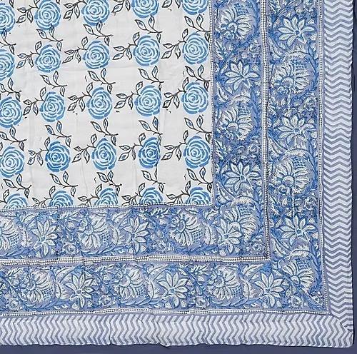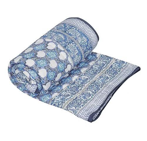 Edredón estampado a mano Khatri Rose Blue Hand Block Edredón impreso para uso doméstico y hotelero