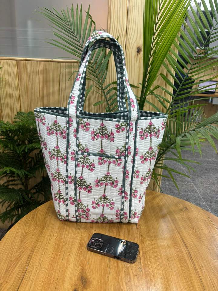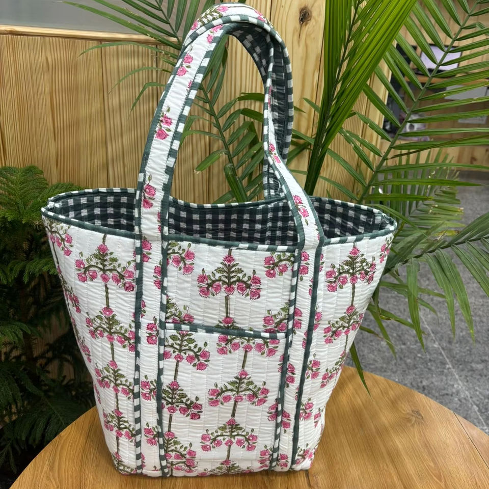 Bolsa de Mano de Algodón Acolchada con Estampado a Mano, Bolsa Ecológica Personalizada, Regalo para Mujer