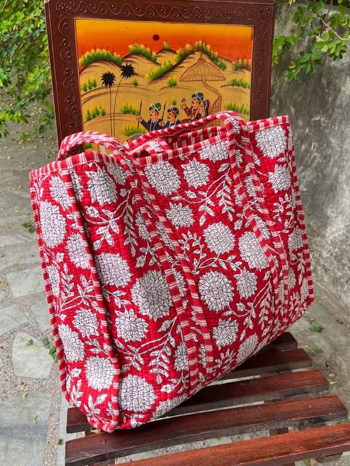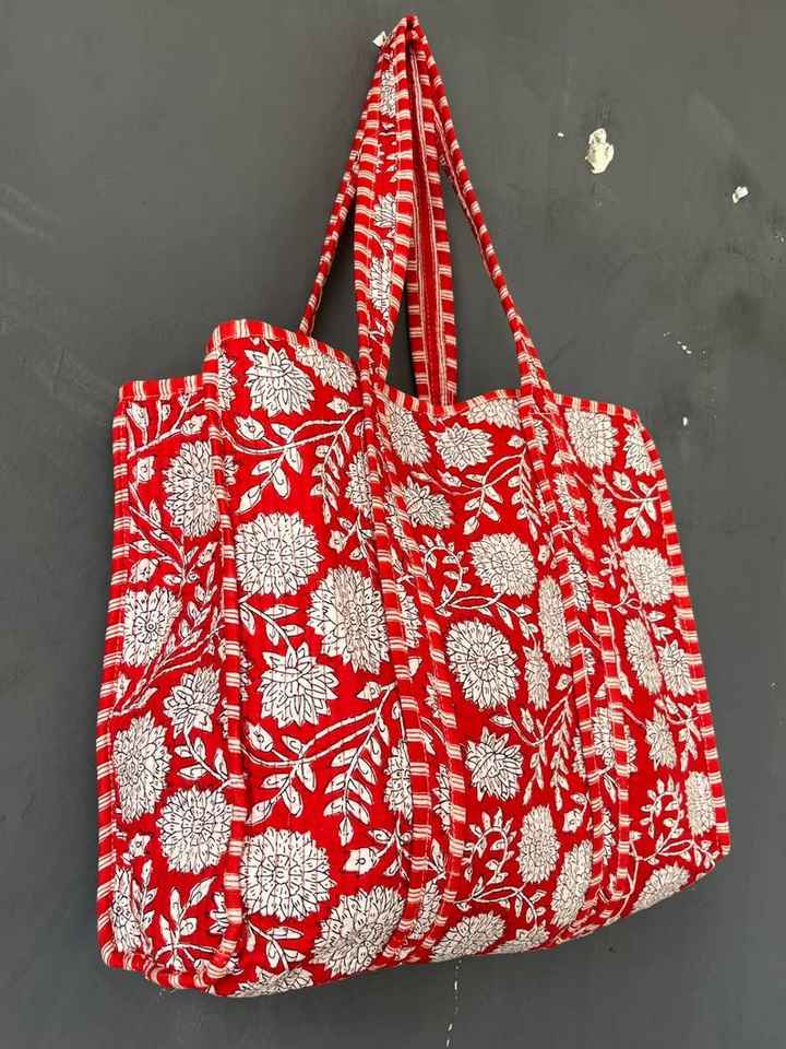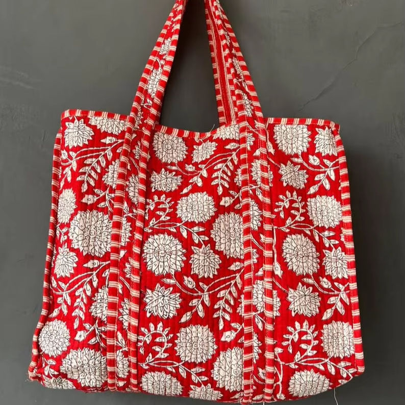 Bolso Tote de Algodón Acolchado con Estampado Artesanal, Ligero, para Uso Diario, Compras y Transporte al Hombro
