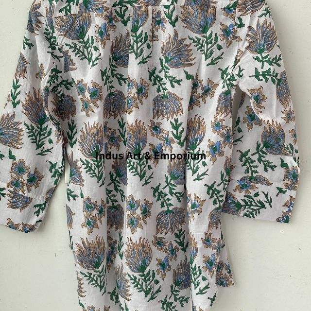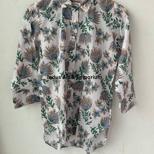 Camisa con estampado de bloques a mano Camisas elegantes para mujer Camisa de tela de algodón suave con estampado de bloques a mano India a la venta al mejor precio