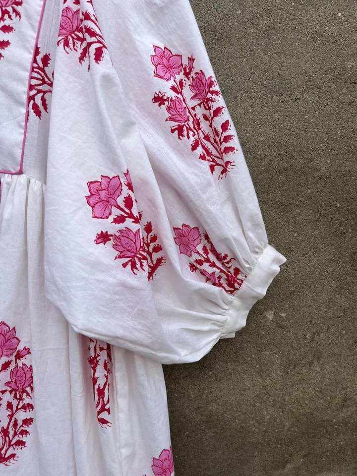 Vestido largo escalonado con estampado de bloques a mano, Túnica de algodón indio, vestido bohemio informal ligero de verano, atuendo cómodo
