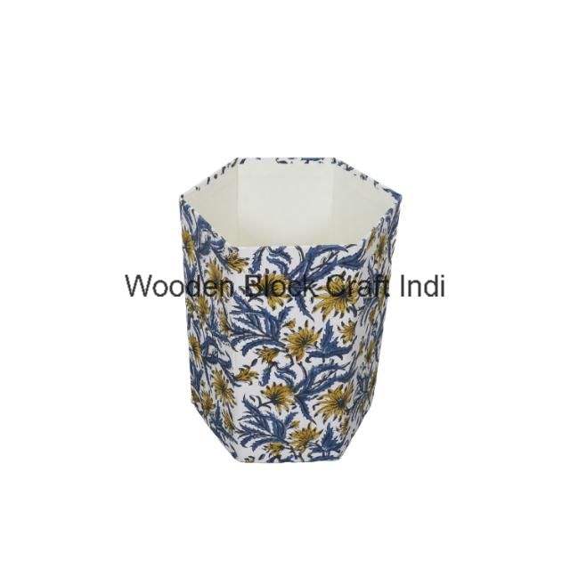 Funda para bote de basura con estampado a mano en tela 100% algodón, diseño enrollable decorativo para el hogar, para un interior elegante.