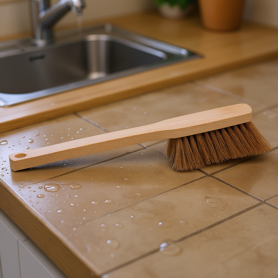 Cepillo de mano con mango largo de fibra de coco de 45 cm, cepillo de limpieza natural