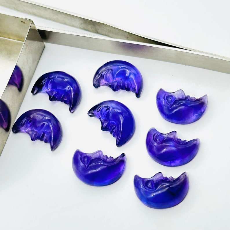 Amatista Tallada a Mano, Media Luna, Piedra Preciosa, Tallado de Luna, para Joyería, Amuleto