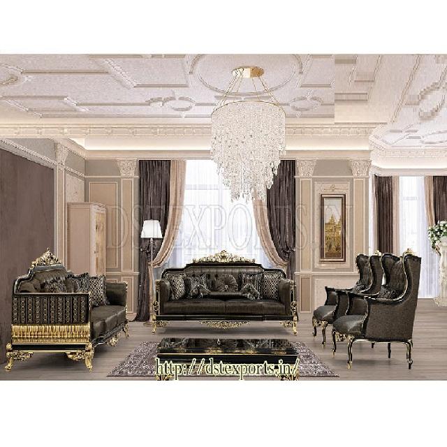 Hand Carved Black and Gold Classic Sofa SetProduct name
