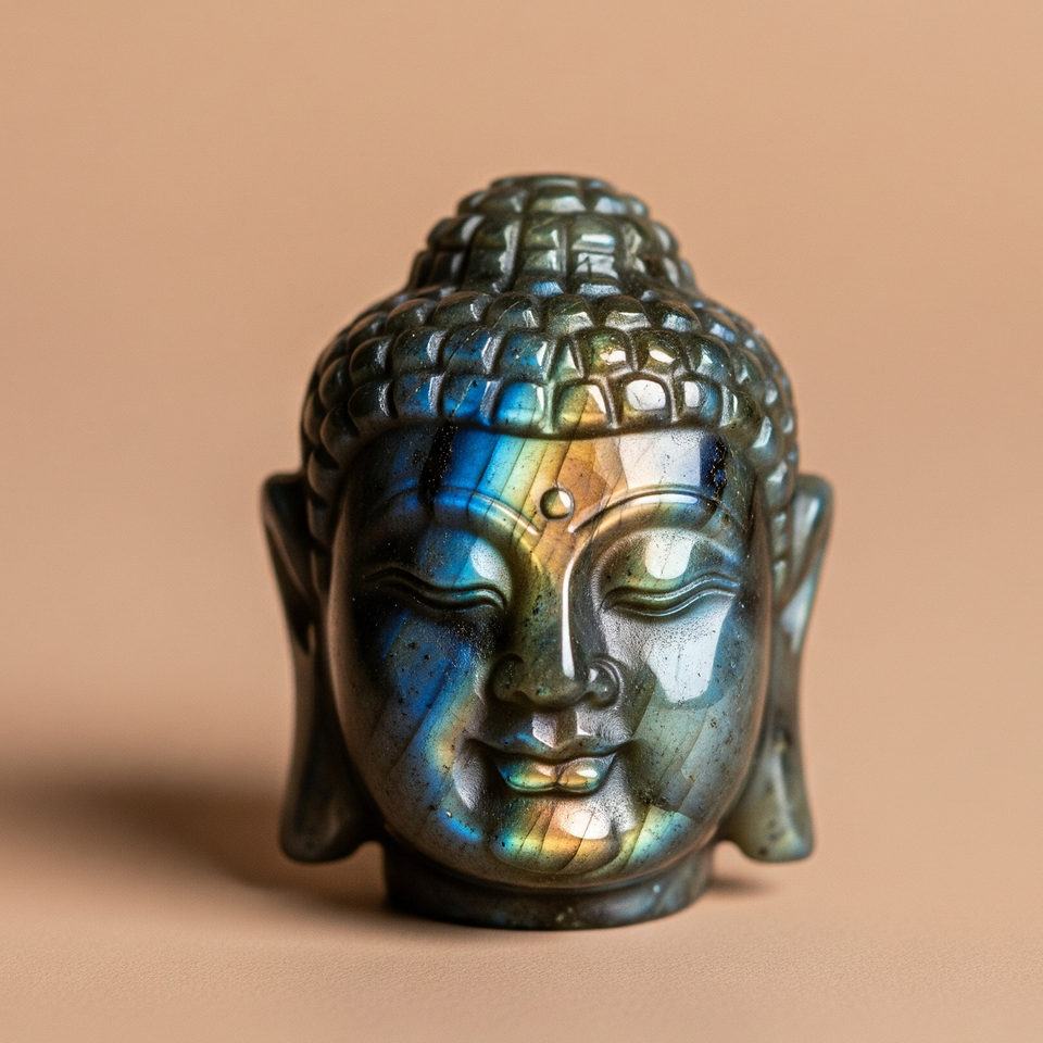 Cabeza de Buda tallada a mano estatuilla labradorita regalo de negocios artesanía india grabado cristal curativo semiprecioso DE LA India
