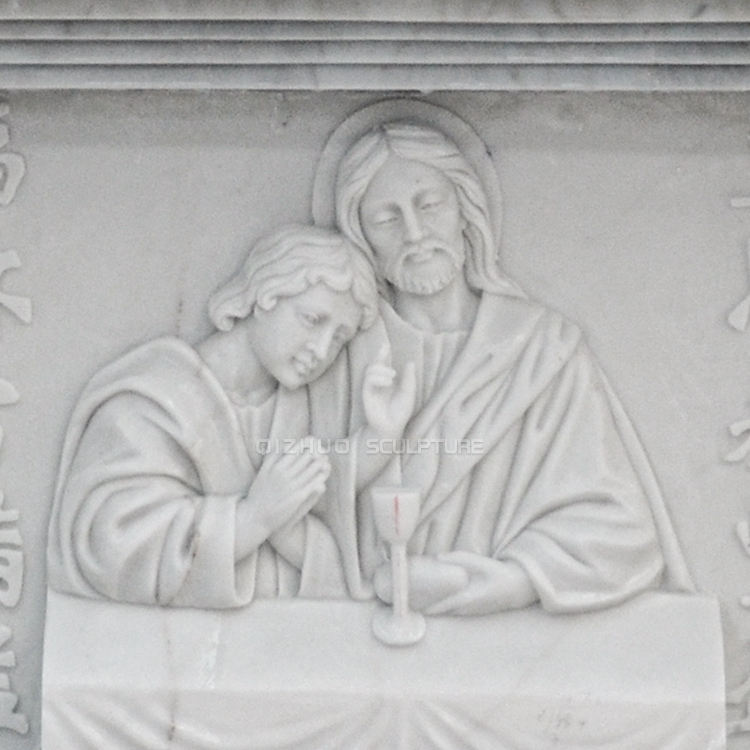 Mesa de Altar y Púlpito de Mármol Blanco Religioso Católico Tallado a Mano con Jesucristo