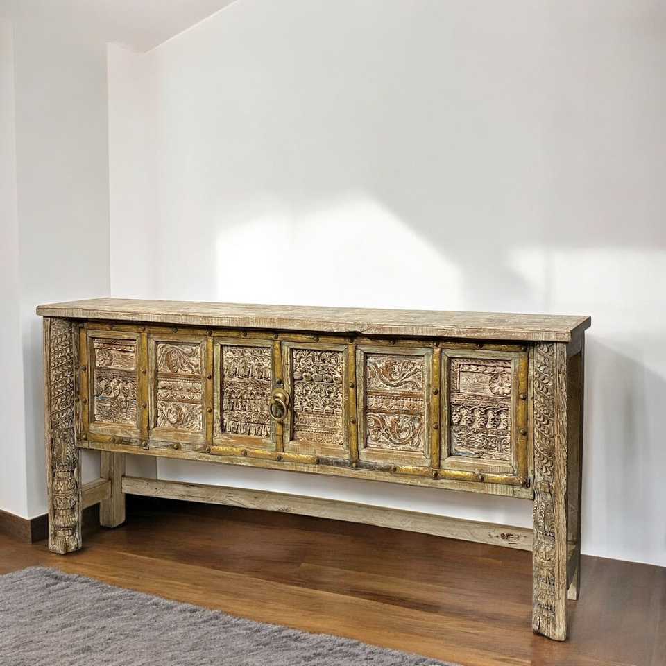 Mesa Consola Tallada a Mano en Madera de Roble Macizo, Estilo Rústico Moderno de Lujo para Entrada, Villa, Sala de Estar, Dormitorio, Hotel, con Espejo