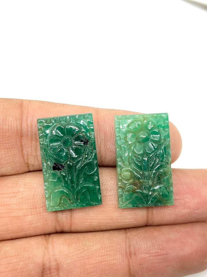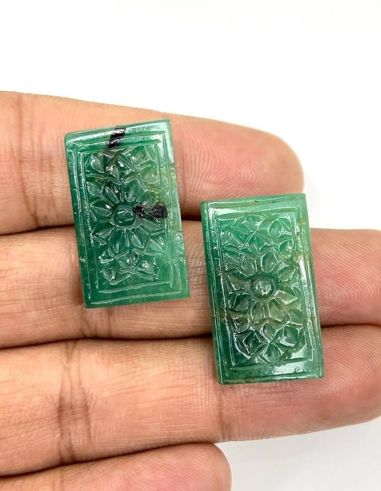 Palabra clave:El par de piedra Esmeralda tallada a mano ofrece belleza real y artesanía