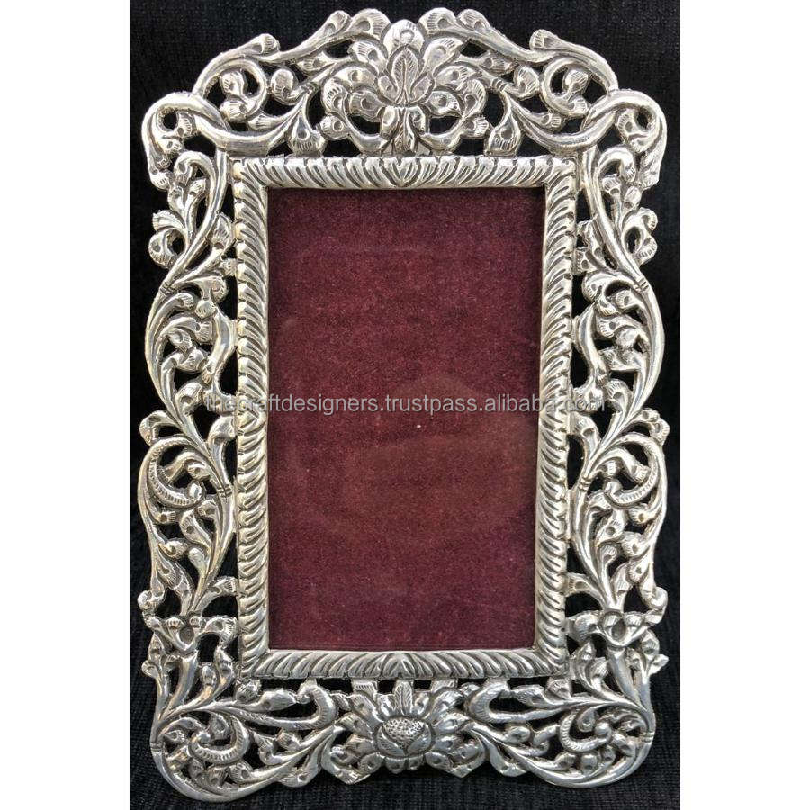 Marco de fotos de diseño Floral tallado a mano, eventos de inauguración de la casa, accesorios de regalo de recuerdo, marco de fotos plateado, artesanías de Metal