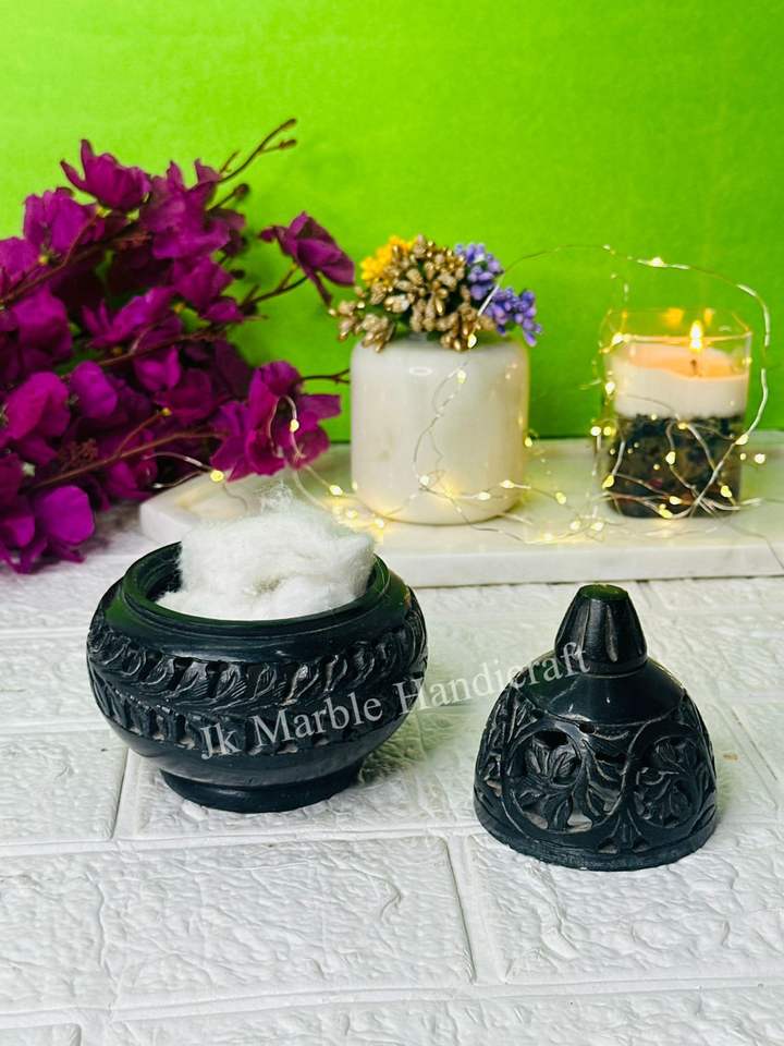Soporte de luz de té de esteatita Natural tallada a mano Embalaje de exportación de clase alta Hermosa artesanía de piedra de estilo de hoja grabada