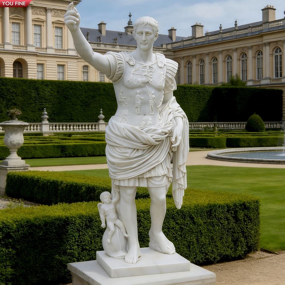 YOUFINE - Estatua de César de Mármol Blanco Romano Tallada a Mano, Tamaño Real, Escultura Clásica de Jardín para Villa y Explotación Agrícola