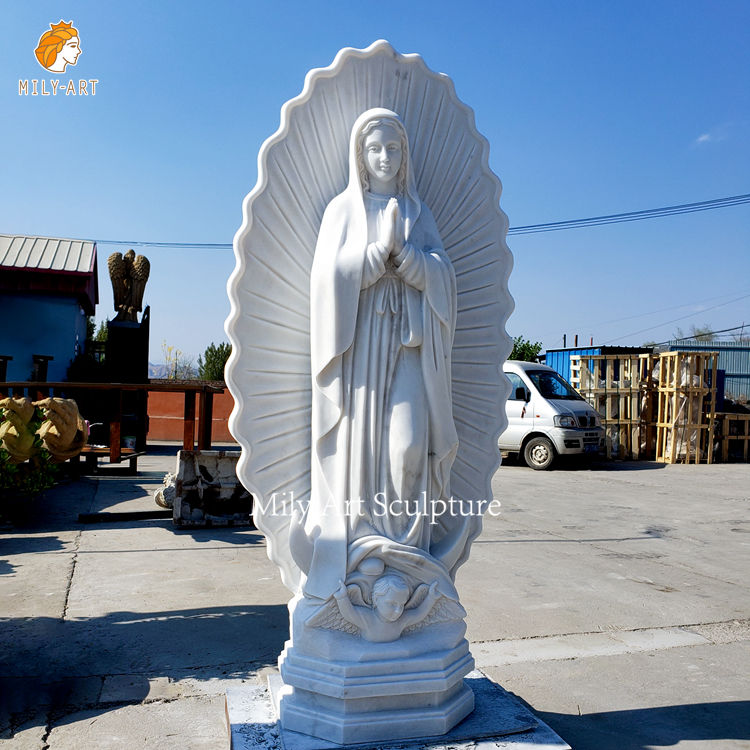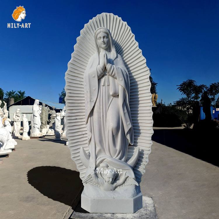 Figura religiosa tallada a mano escultura mármol Guadalupe estatua para exteriores