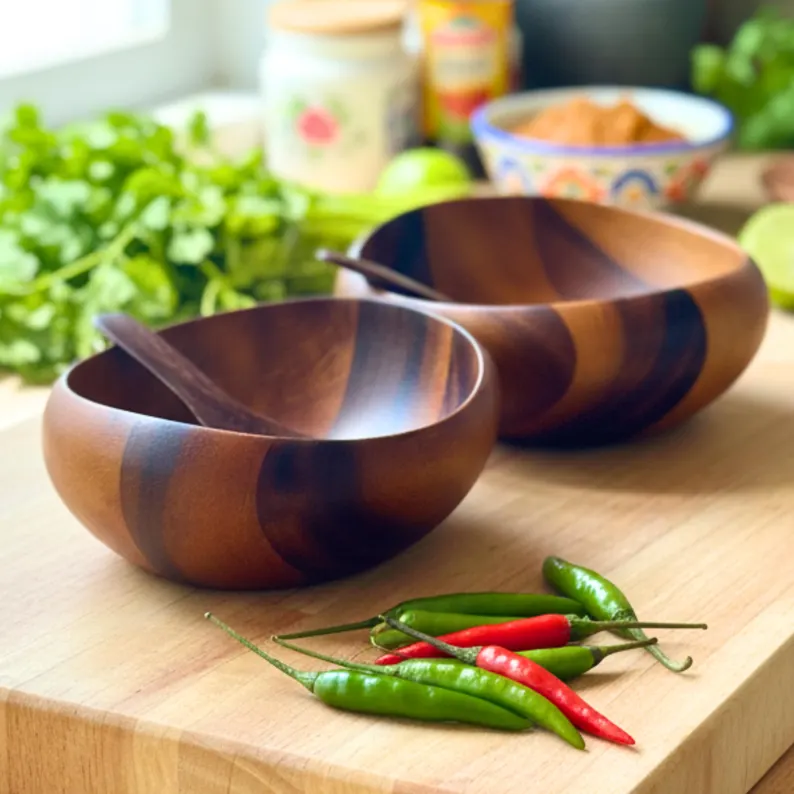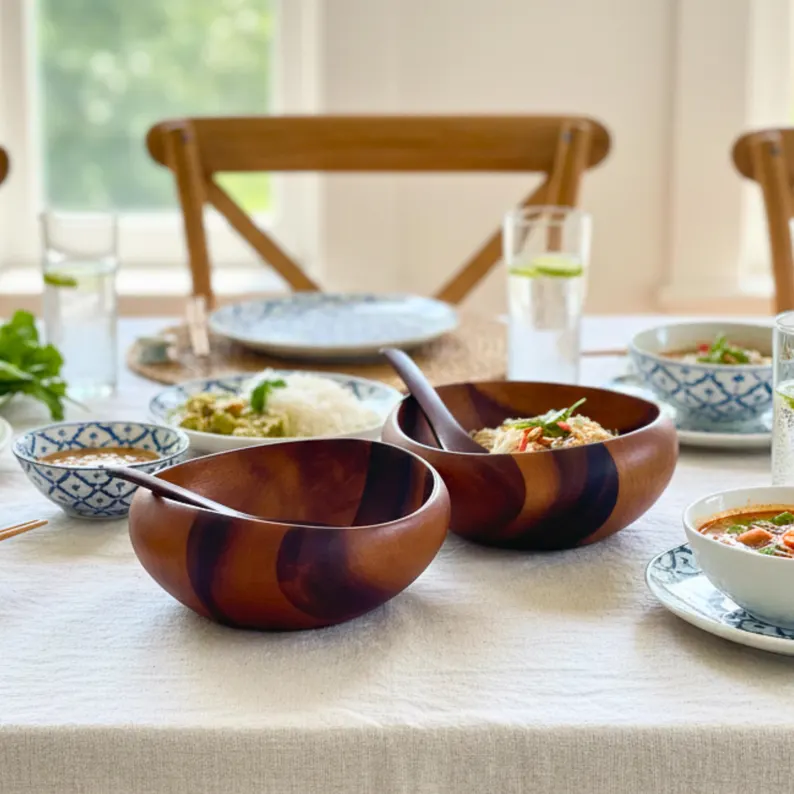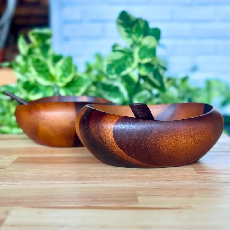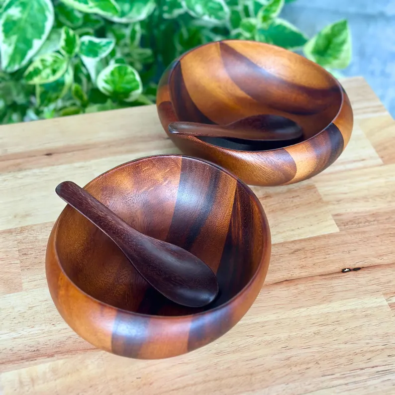 Juego de Tazones de Madera Tallados a Mano - Tazones Rústicos para Sopa y Cereal