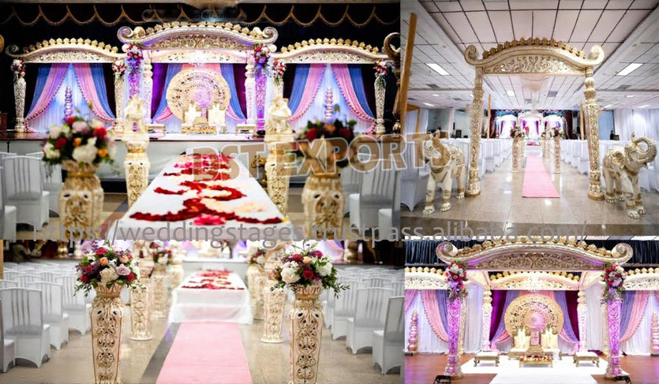 Mandap de madera tallada a mano, nuevo diseño, exportaciones DST, alta demanda, diseño en forma de corazón, mandaps de boda hindú, fabricantes de Malasia