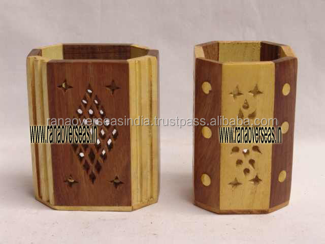 Nombre:Soportes de escritorio de madera tallados a mano para bolígrafos en dos tonos