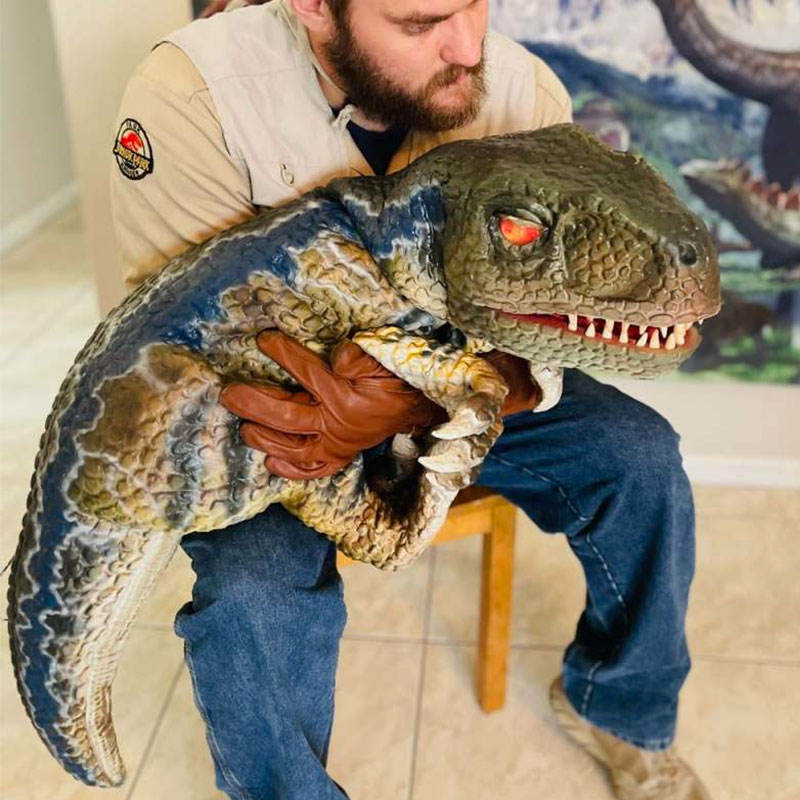 Control de mano animatronic Baby Dinosaur Puppet para Navidad por estuche de madera contrachapada/estuche de vuelo/depende de la elección del cliente