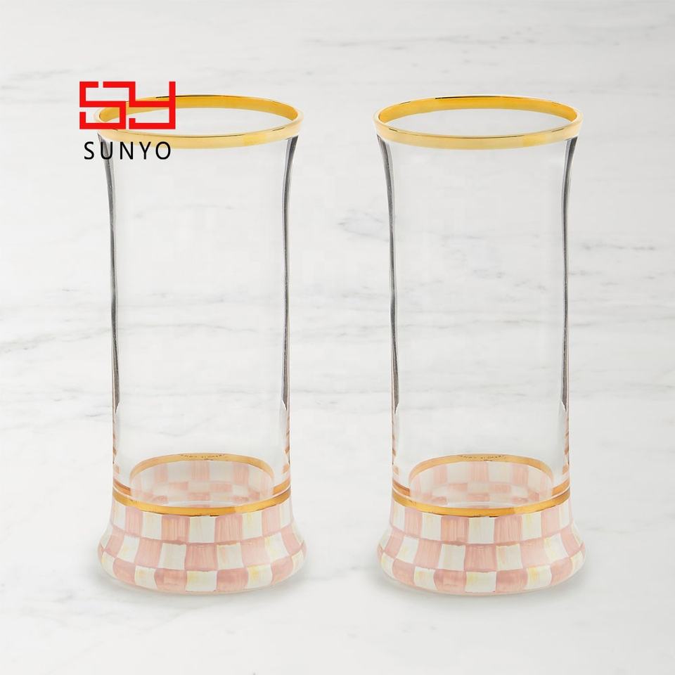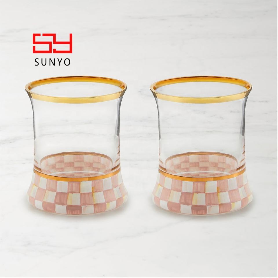 Copa de Vino de Lujo con Borde Dorado, Diseño de Tablero de Ajedrez, Hecha a Mano y Personalizada, Copa de Whisky con Tallo Largo, Copas de Martini y Margarita