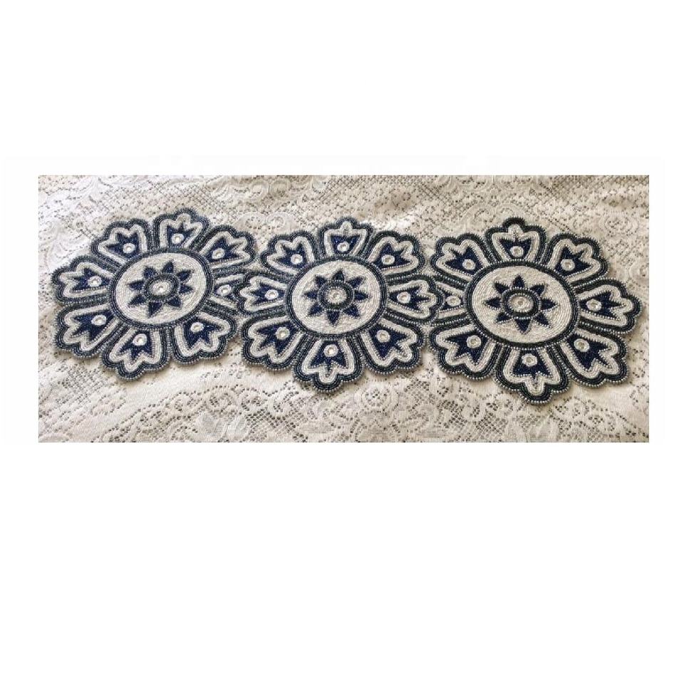 Hecho a mano hermoso camino de mesa con cuentas de cristal centro de mesa vajilla mesa de comedor sala de estar regalo de boda decoración moderna