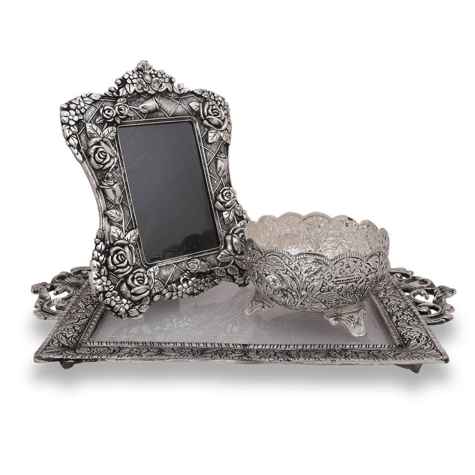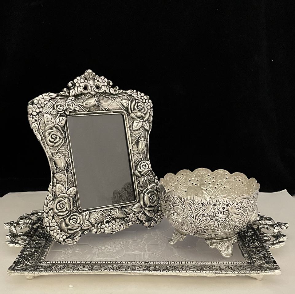Nombre del producto:BANDEJA DE PLATA DEL RECTÁNGULO, MARCO DE FOTOS Y CUENCO REDONDO TALLA