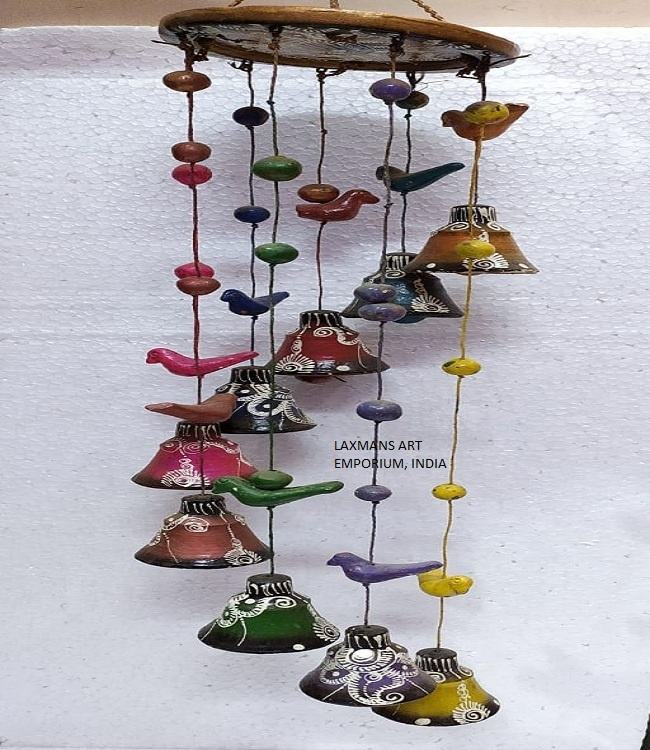 Hechos a mano de terracota/arcilla pintados a mano campanas redondas colgantes para decoración proveedor al por mayor de La India