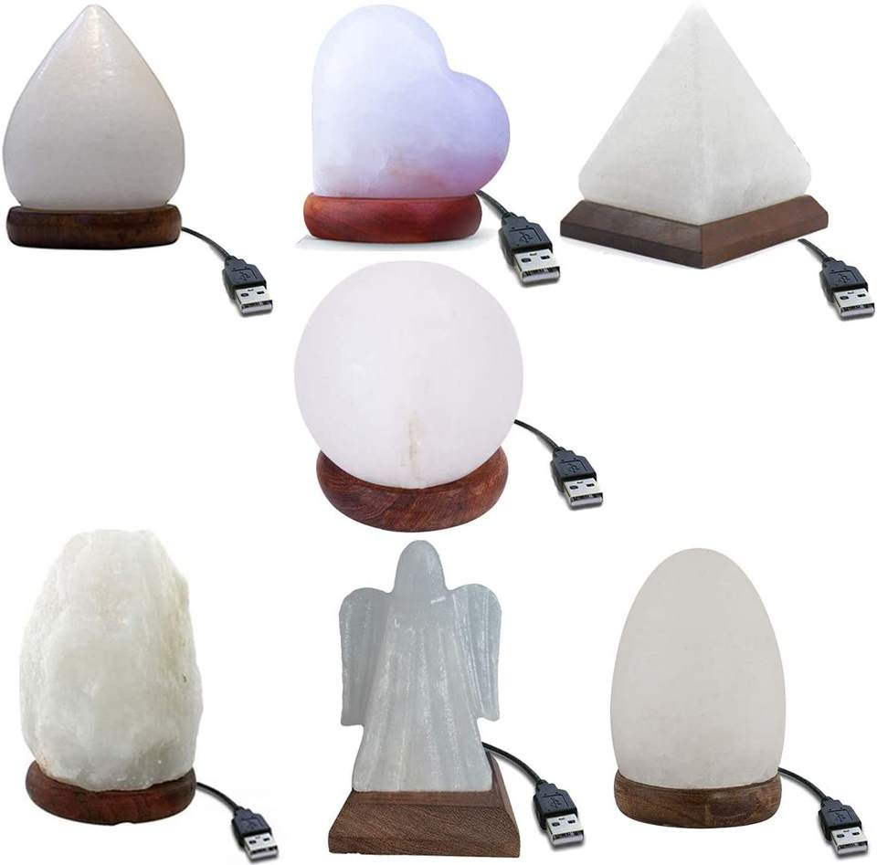 Lámpara de sal blanca del Himalaya USB hecha a mano y que cambia de color, roca de cristal natural en forma de corazón con estilo de flor tallada