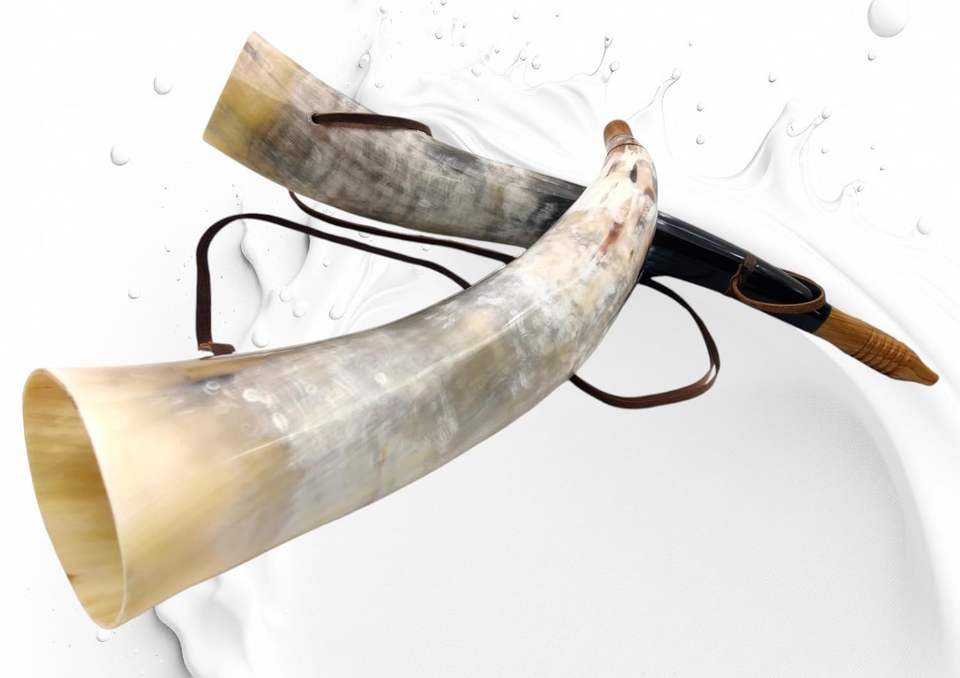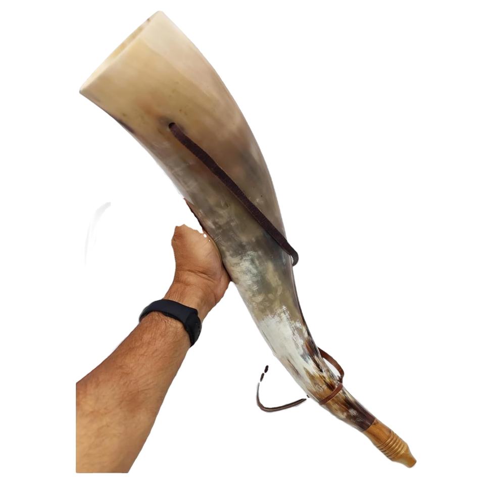 Cuerno de Búfalo Religioso Vikingo Hecho a Mano con Cinturón de Cuero y Ágata, Cuerno de Soplado Gigante Ecológico