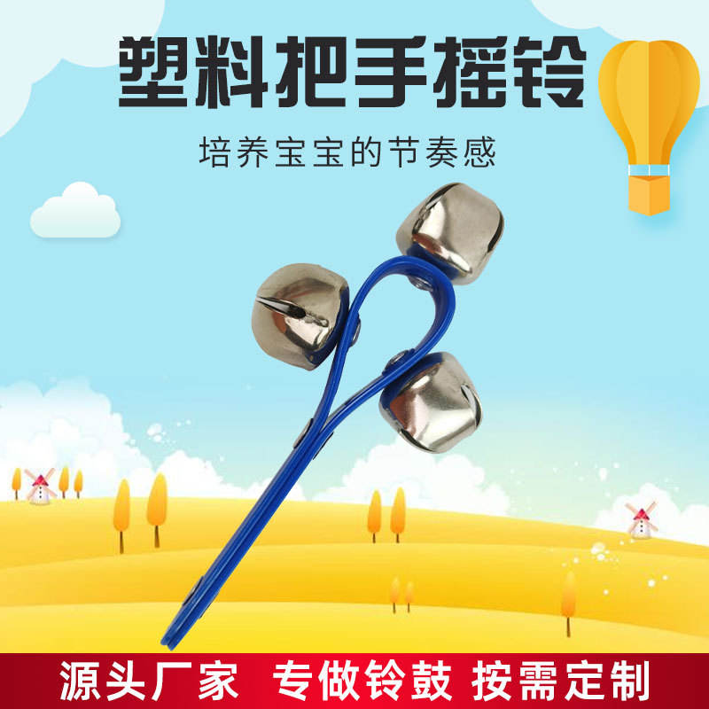 Campanas de manivela con mango de plástico, color azul intenso, instrumento musical para niños de 2 a 4 años, juguete unisex